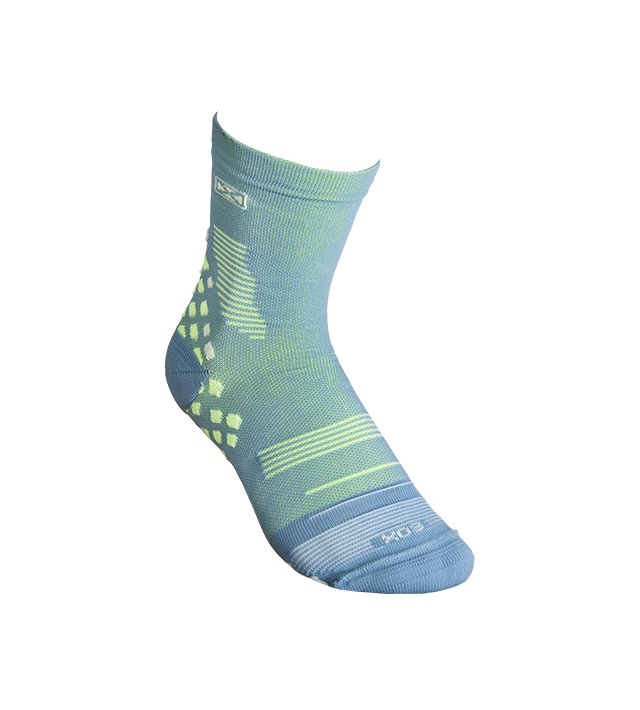 Medias de compresión pensadas para el deportista. Desarrolladas para contribuir a la re-circulación del sistema sanguíneo y a la contención de los músculos. Colaboran en la prevención de la fascitis plantar por la compresión transmetatarsal. Puño doble elastizado con protección lateral para evitar roces, caña y