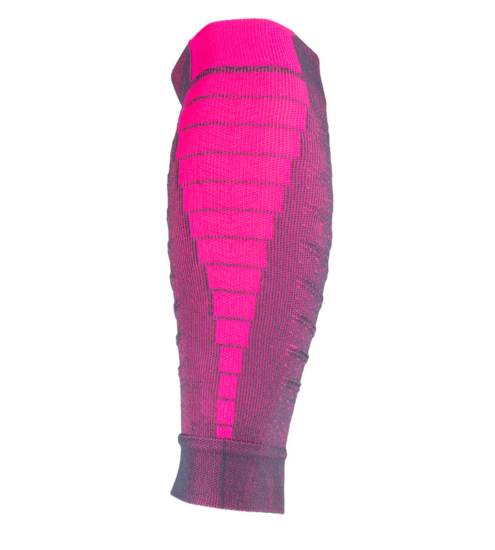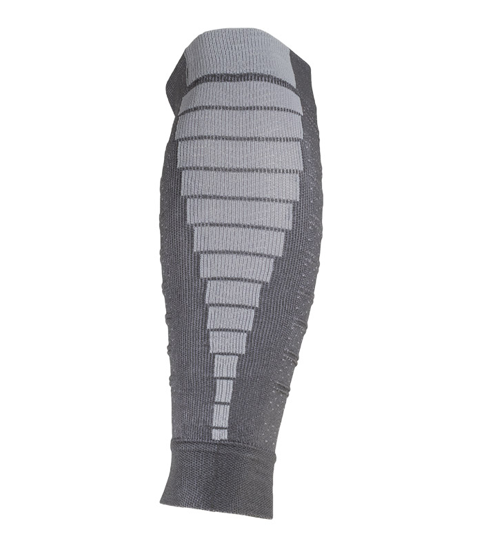Se extiende desde el tobillo hasta la parte inferior de la rodilla. Pantorrilleras de compresión graduada pensadas para el deportista. Desarrolladas para contribuir a la re-circulación del sistema sanguíneo y a la contención de los músculos. Puño superior e inferior doble. El agregado de puntos de contacto permite la relajación de las tensiones propias del pie. Secado rápido gracias a su composición. Permiten que el usuario las combine con medias específicas como soquetes para running, por ejemplo.