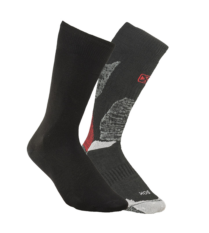 VE28C: Puño simple elastizado, tejido liso, costura de puntera extra plana, talón y puntera reforzados. Secado rápido gracias a su composición