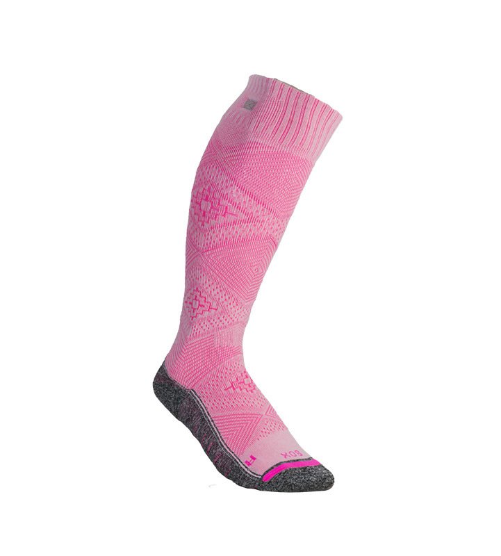 Puño doble, caña y pie elastizado anatómico, canales de ventilación en toda la media para mayor respirabilidad, talón y puntera reforzados, costura de puntera extra plana. Tejida con hilado de DRY FYL que tiene como propiedad expulsar la humedad del pie hacia afuera y mantenerlo seco. Secado rápido gracias a su composición.