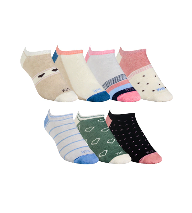 Siete pares del artículo IN20C. Media invisible, sin caña, talón en “Y” elastizado antideslizante, tejido liso, costura de puntera extra plana, talón y puntera reforzados. Ajuste y calce perfectos gracias al agregado de spandex.