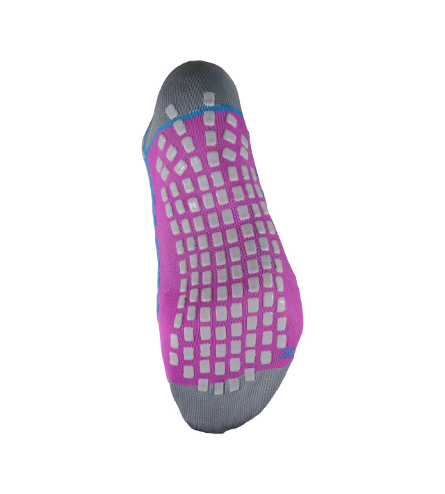 Puño doble elastizado, pie liso con antideslizante ideal para la práctica de pilates, yoga y natación. Caña corta, costura de puntera extra plana, talón y puntera reforzados. Ajuste y calce perfectos gracias al agregado de spandex. Secado rápido gracias a su composición.
