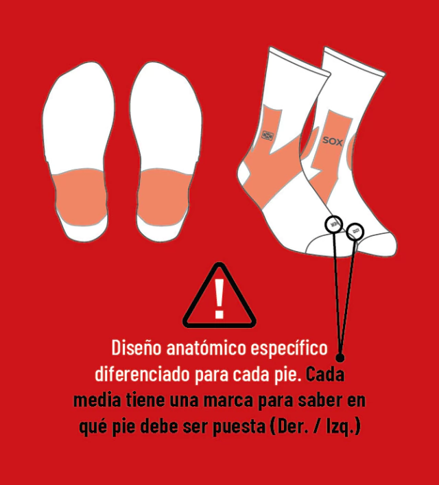 Diseño Anatómico: Cada media posee una marca que indica en que pie debe ser colocada, para garantizar un correcto funcionamiento de la tecnología.