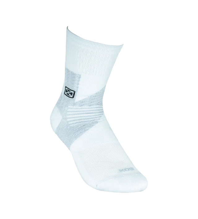 Medias estabilizadoras de tobillo pensadas para el deportista. Desarrolladas para contribuir a la re-circulación del sistema sanguíneo, a la contención de los músculos y a la estabilidad de los ligamentos laterales del tobillo. Colabora en la prevención de la fascitis plantar por la compresión transmetatarsal. Puño doble elastizado, caña y pie anatómicos, puntos de apoyo sectorizados con mayor densidad para absorber impactos. Talón y puntera reforzados, costura de puntera extra plana. Secado rápido gracias a su composición.